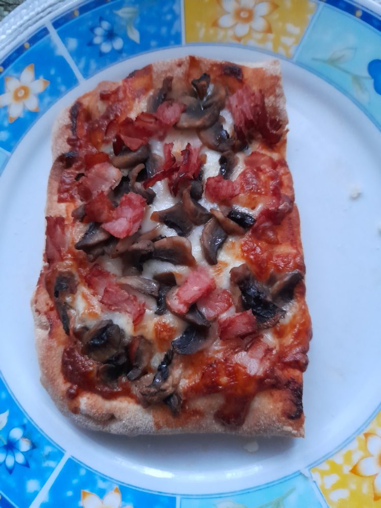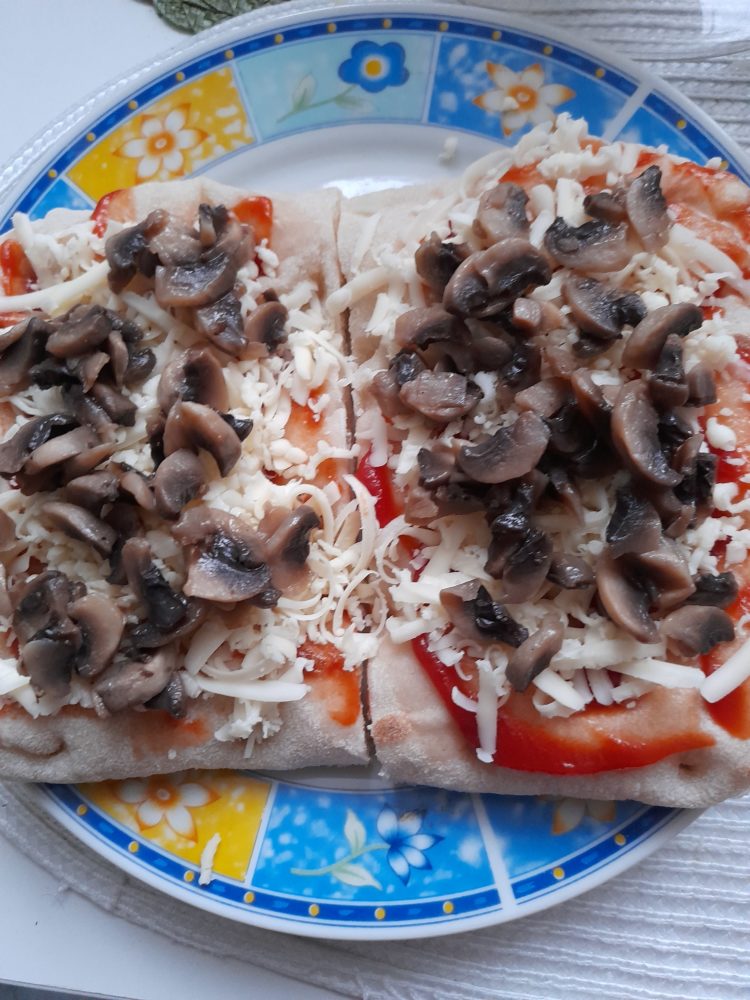 Smaczna kolacja na ciepło z ulubionymi dodatkami, każdy może sobie wybrać co chce dodać , u mnie z serem, pieczarkami i szynką.