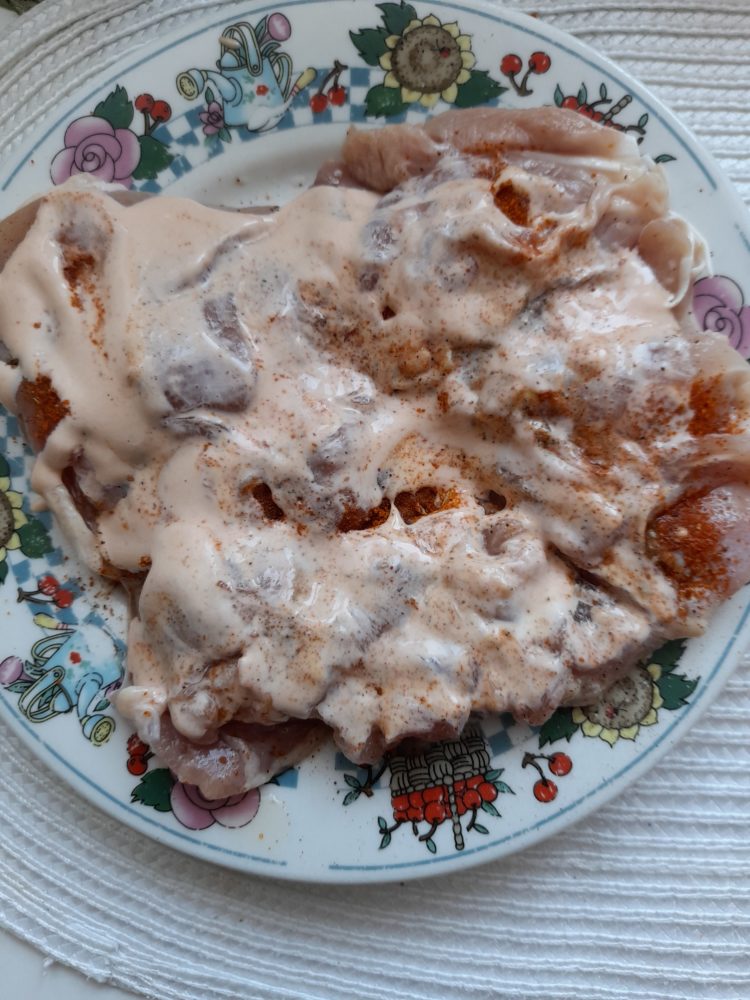 • Udko rozłożyć posmarować sosem majonezowo – keczupowym.