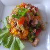 - Kuskus zalać do połowy szklanki gorącą gotowaną wodą., pozostawić do napęcznienia . Napęczniały umieścić w salaterce.